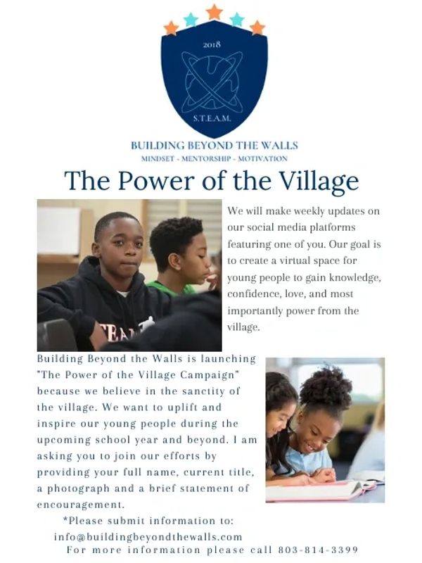 Encourage a young person to join the village. Share your gifts and talents by becoming a mentor or speaker.